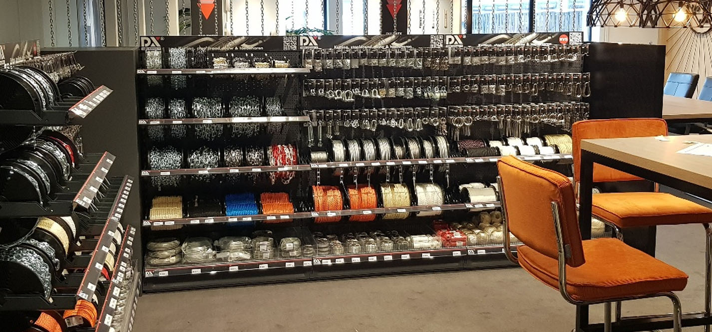 Sinds de introductie van het DX Schapconcept voor ketting, staalkabel, touw en toebehoren in 2017, volgen de winkelinrichtingen met dit concept zich in snel tempo op. Verdeeld over 160 winkels zijn er inmiddels ruim 500 winkelmeters ingericht met het DX assortiment.