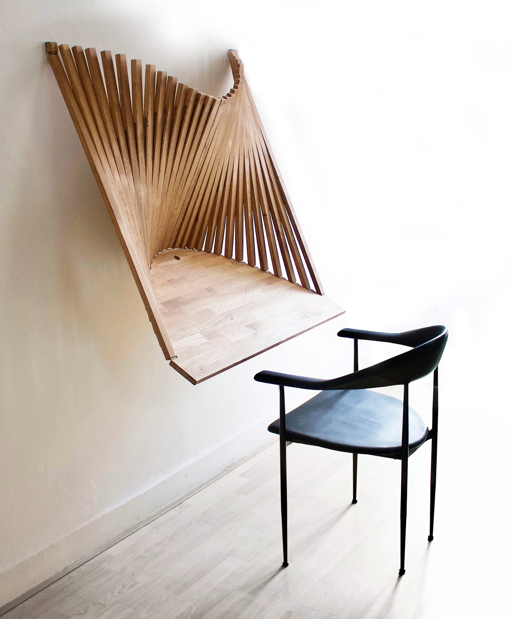 Robert van Embricqs, the recipient of the Red Dot Design Award for his Rising Chair, delivers TED Talks on bringing his creativity to fruition, and his designs are showcased in the Netflix film Big Bug (2022). The news of our hinges being a crucial component in his constructions filled us with excitement. Our account manager, Alexander, personally visited him to discuss this collaboration.