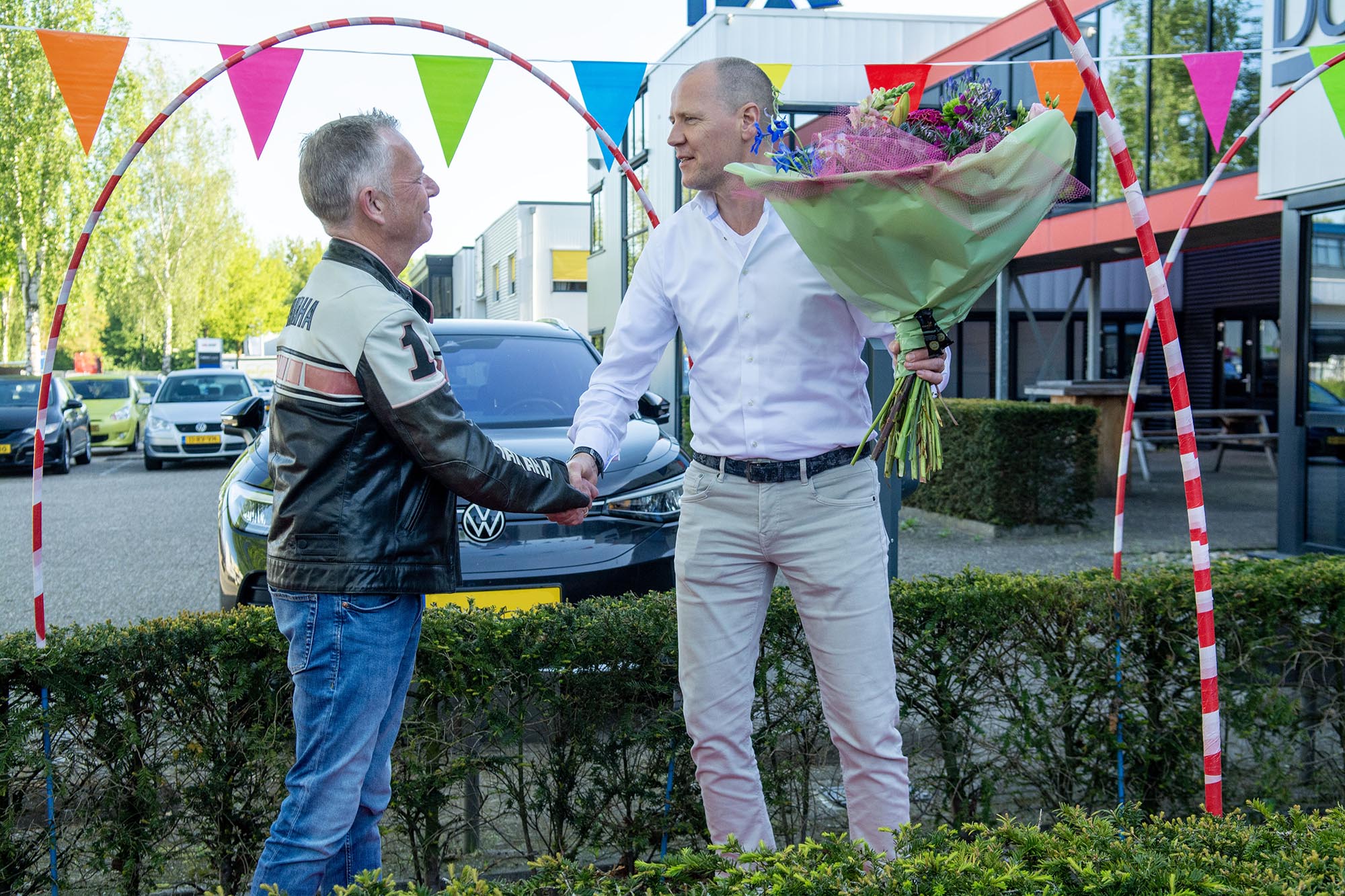 's Ochtends om 8:15 uur stonden we met het hele team klaar om Ivo hartelijk te ontvangen. De rode loper lag uit, de ballonnen en slingers hingen klaar en de (alcoholvrije) champagne stond feestelijk op de tafels. Aangezien we op een industrieterrein gevestigd zijn, rijden de vrachtwagens af en aan. En daartussen zagen we Ivo breedlachend in een Mainfreight vrachtwagen met de kleuren van zijn favoriete voetbalclub verschijnen.