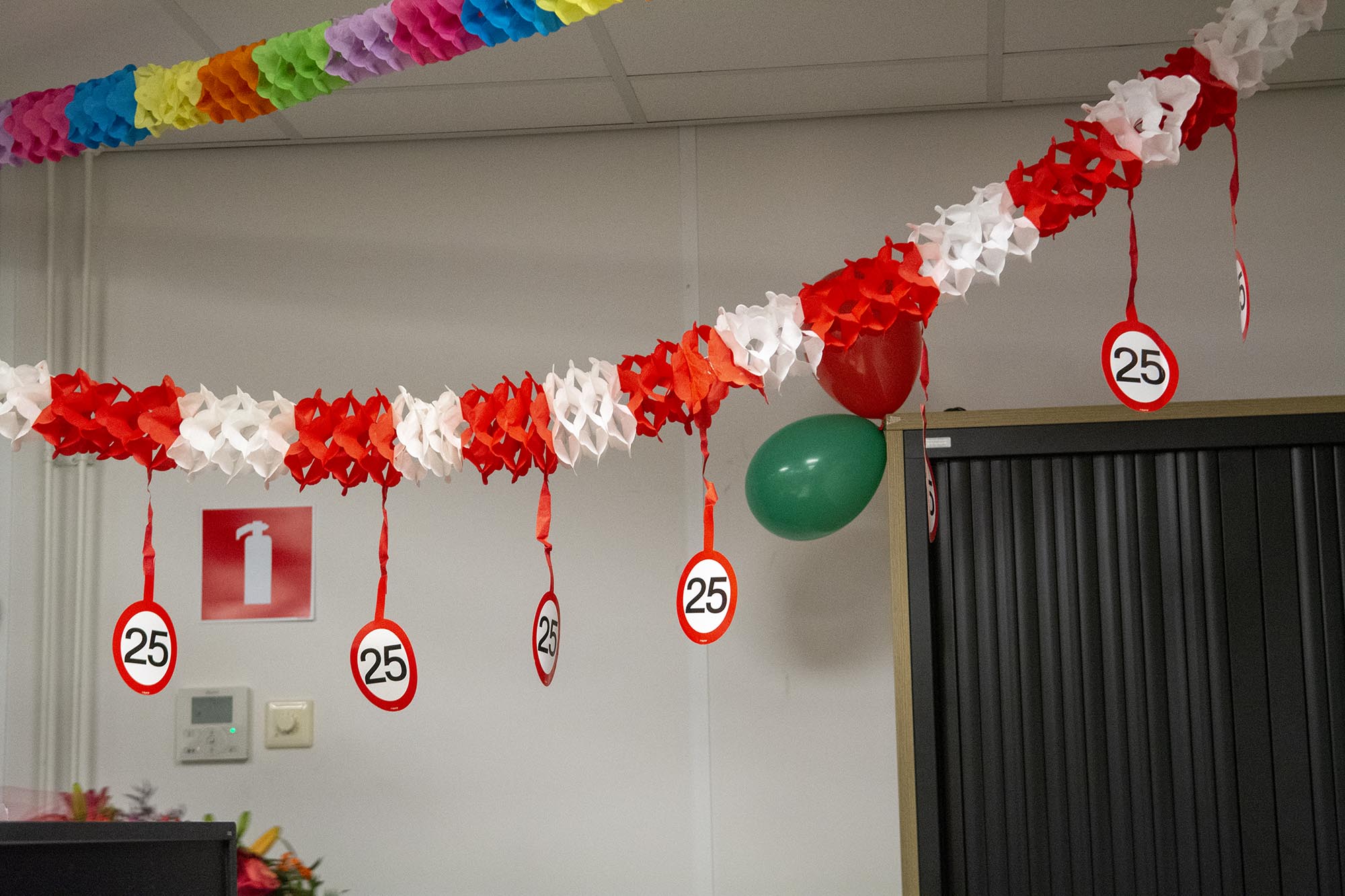 Elk uur instant soep! Dat zou maar zo het motto van Jan kunnen zijn. Al 25 jaar lang zien we Jan geregeld met een kopje soep druk telefonerend met China door de gang lopen. Dat Jan al 25 jaar in dienst is, wilden we natuurlijk niet zo maar voorbij laten gaan. En daarom vierden we op 8 december met zijn allen zijn werkjubileum!